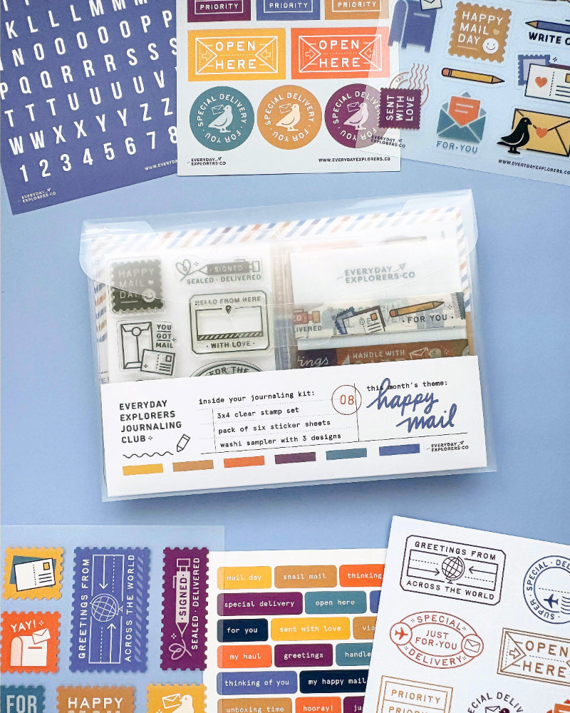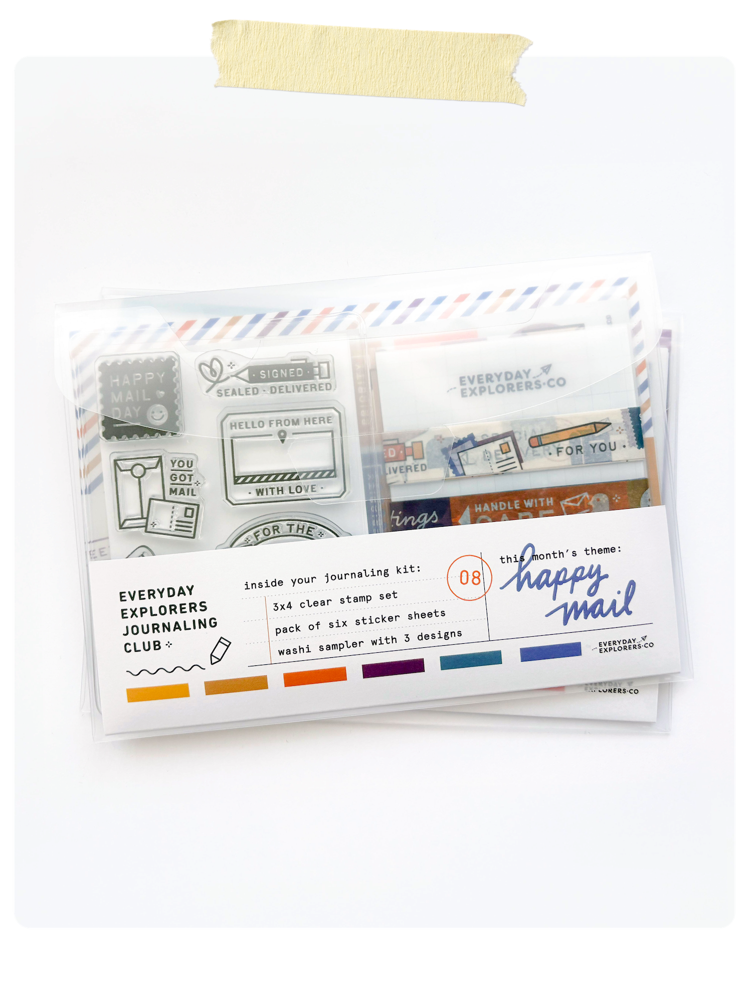 The eighth edition of the Everyday Explorers Journaling Club kit is: Happy Mail! Use this kit as a reminder to document all the messages — snail mail or otherwise — in the coming year.