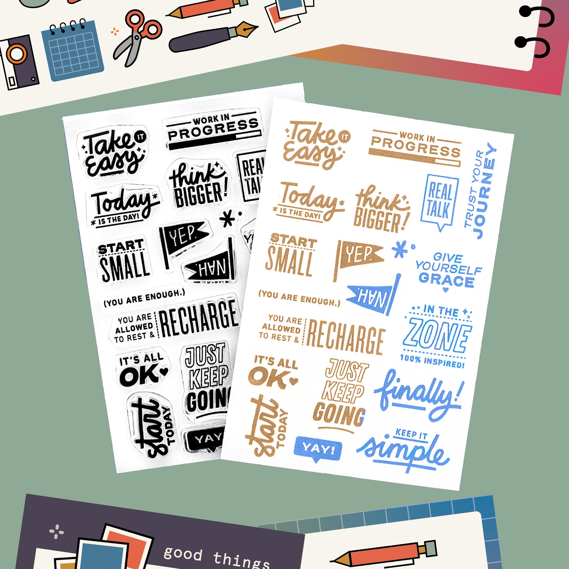 Here's a collection of sentiments for goal setting pages, personal journaling, and encouragement for cards and snail mail. Think of this set as an extension to our bestselling set, Vision Board!
