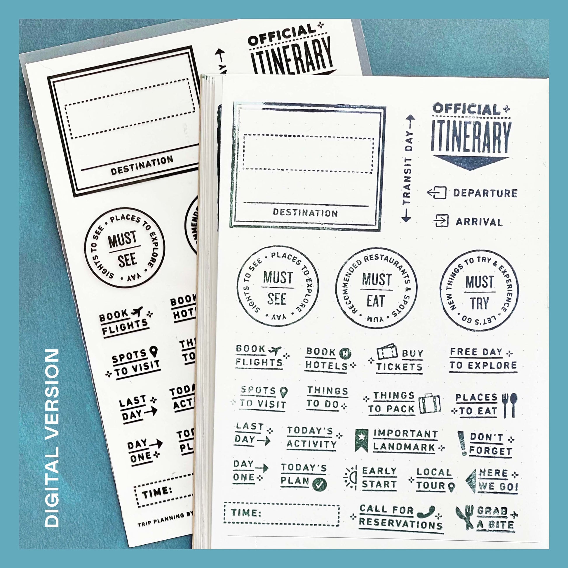 Here’s a set to plot out all your upcoming (or past!) summer adventures in your planners and travel journals. Mark important days, create itineraries or must-see lists, or use the prompts to jot down quick reminders!